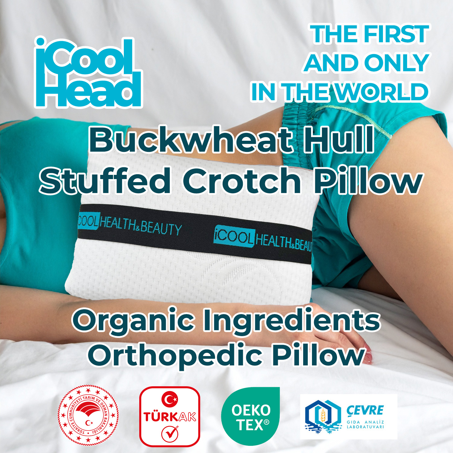 iCool Head Orthopedic Leg and Knee Pillow – Natural Buckwheat Hull Filling, For Side Sleepers and Pregnant Women 32×22 cm